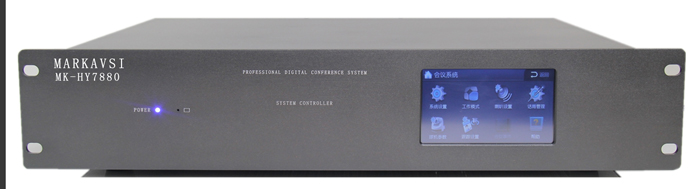 品牌MARKAVSI 型號MK-HY7880 多功能全數字智慧型觸摸手拉手會議系統主機-智慧型6芯有線全數字手拉手會議系統(發言+視頻+表決+4.5寸觸控屏+會議服務)